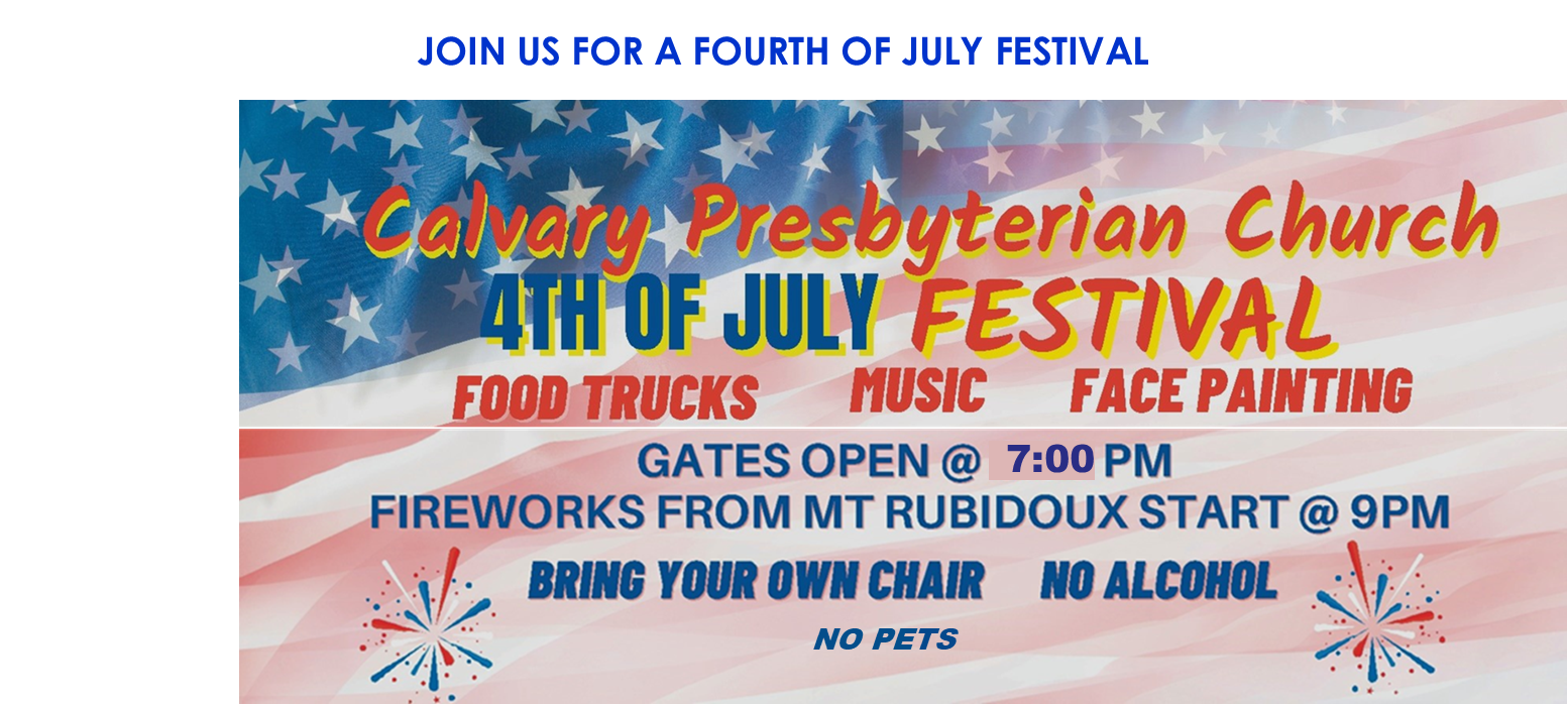 Our Church offices will be closed on Friday, July 4, 2025. We will re-open on Monday, July 7, 2025. We hope you will join us for our Annual Fourth of July Festival at 7:00 p.m. in our lower parking lot for festivities, music and fireworks from Mt. Rubidoux. Help us celebrate America’s Birthday!.